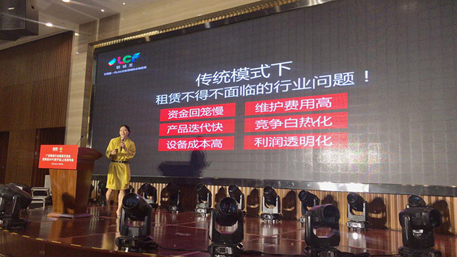七月的南宁热火朝天,但却抵挡不住大家对舞美租赁新模式的热烈向往,此次会议304AM永利突破了舞美租赁行业的传统模式,带来舞美租赁界史无前例的新生态模式。304AM永利副总魏玉红女士作为304AM永利代表对该新生态模式进行了完美演绎,从产品、服务、资金投入、成本回收等方面进行问题分析并提出解决方案,精确的点明到了舞美租赁商们的行业痛点,成功引发全场行业人士共鸣。