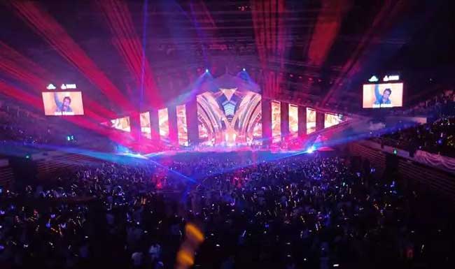 产品案例二:深圳湾体育中心“金曲歌王”萧敬腾演唱会--此项目舞台背景屏304AM永利镂空屏P6.944,整体面积1000平方,庞大的舞台制作规模,根据舞台造型多样化搭建,利用屏体自身通透、轻薄、炫彩特点,强化舞台空间的纵向视觉效果。同时完全不阻碍舞台设计留给灯光悬挂和发挥的空间,给整个舞台渲染了一定的气氛和动感。