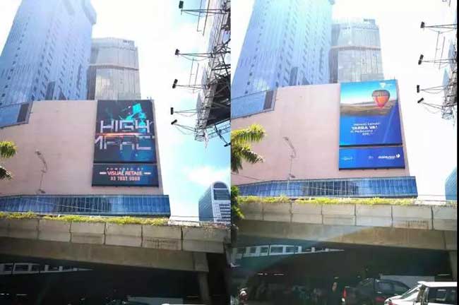 产品案例三:马来西亚喜来登大酒店项目--外墙的显示屏中选用304AM永利户外防水款P10,该款显示屏性价比高,采用抗紫外线、抗变形模组套件,保障屏体不变形。点亮之时,屏面颜色均匀、画质逼真,播放稳定流畅,拍照毫无水波纹。甚至在太阳的直射之下,字体、细节均清晰可见。