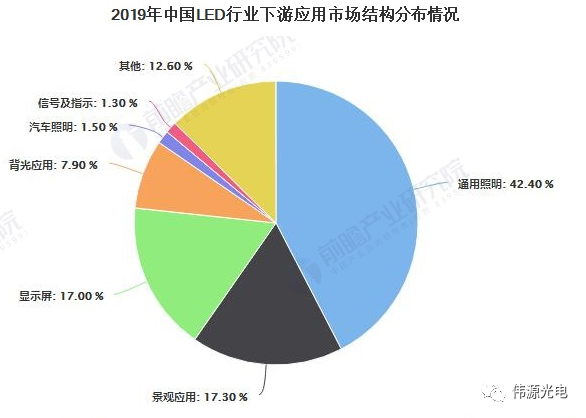 我国LED产业虽然起步较晚,但是伴随着21世纪的到来,国家宏观经济持续增长,以及LED产业得到政府的大力扶持,LED技术得到了有效突破,国内LED产业发展迅速。目前,中国LED已经应用于众多下游行业,包括通用照明、汽车照明、信号及指示、显示屏、景观应用和背光应用等。