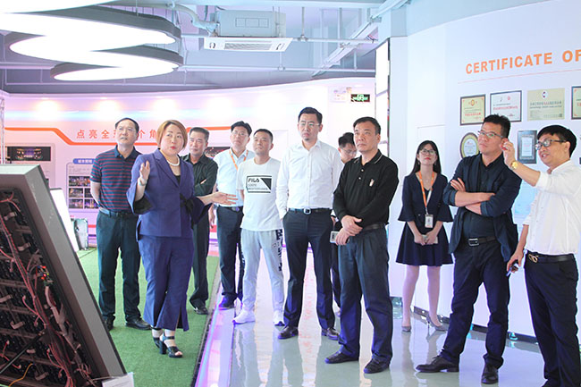 LED显示屏产品成果,并不时就产品涉及的一些技术功能、研发创新、市场销售等问题进行详细询问,可见对此次考察十分用心。