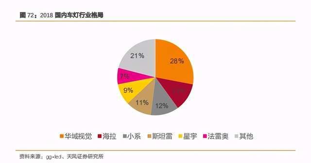 国内来看,华域视觉依然是国内最大的车灯供应商,海拉、日本小糸、斯坦雷、星宇和法雷奥在第二梯队。凭借快速响应和高性价比的产品,预计星宇将继续进一步挤占海拉、斯坦雷和法雷奥的市场份额。