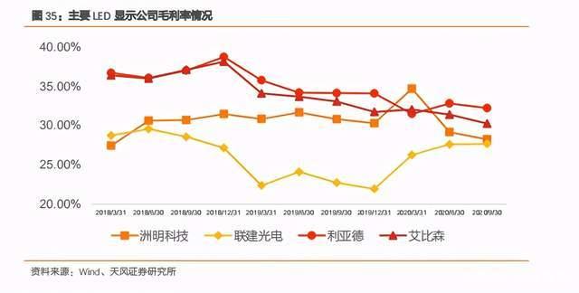 毛利率方面,LED 显示行业毛利率整体呈现下滑的趋势,主要因行业内竞争加剧、疫情影响及国内宏观环境影响导致;