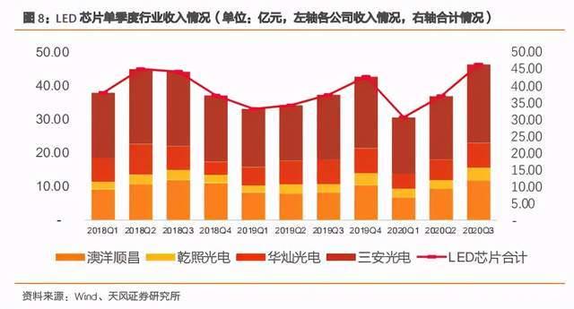 单季度看,受疫情影响,2020 年前三季度,主要的 LED 显示屏公司收入都大幅低于去年同比数据,随着疫情回暖,新基建的投入,LED 显示总体收入环比有所增长。