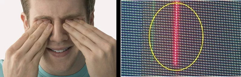 痛点之二,使用一段时间后大屏上会出现很多“毛毛虫”,严重影响画面的完整性。
