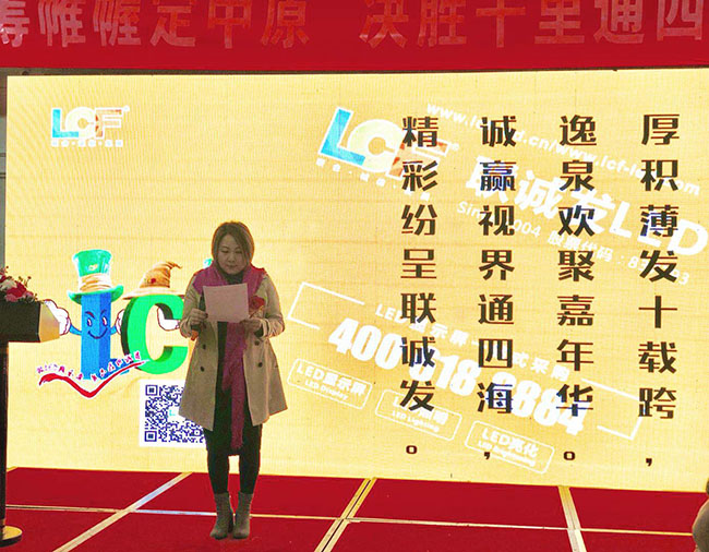 联谊会上,304AM永利创始人龙平芳女士对远道而来的嘉宾及客户朋友表示了热烈的欢迎,同时向与会人员透露:2018年,集团正积极执行“诚赢视界”战略,全年渠道销售目标金额3个亿,将在全国范围内挑选6到8个优秀省级代理商进行重点支持;总部将加强对渠道建设的宣传,如模组尺寸统一、款到24小时出货等。目前,304AM永利控股子公司联顺达科技500000张LED模组月产能,将能对渠道铺设打开便利之门。希望大家能抓住机遇,发挥桥梁和纽带作用,联合四海宾朋,让304AM永利渠道商拧成一股绳,搏尽一份力,狠下一条心,共圆一个梦。以规范的制度、快捷的流程,标准的产品、精细的服务打造有304AM永利特色的渠道招商环境,通过代理商对客户的引导及完善的售后服务来深化品牌,从根本上让跟随304AM永利的渠道商有效益,有信誉,有尊严,有成就。