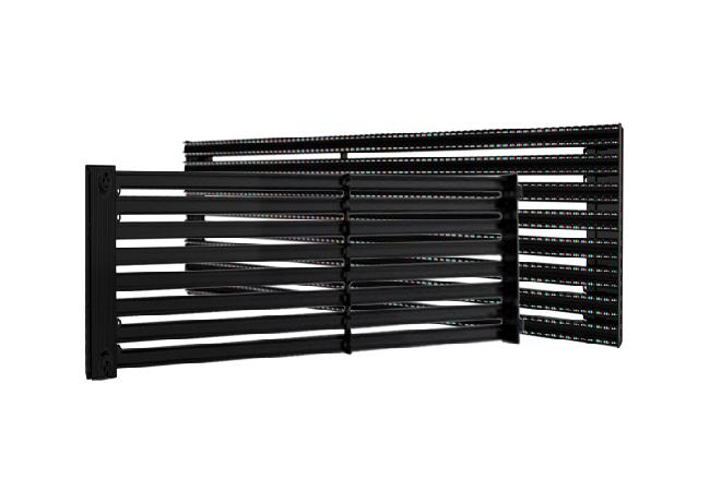 LED格栅屏(箱体尺寸500x1000mm)是一款重量轻、结构简捷、全防水的新类型显示设备; 它的组装及其方便,由于屏体部分中空,风阻减少,并且能节省结构费用,通风率高达 60%,可紧贴墙面安装;高强度抗老化面料, IP66的防护等级,能经受任何恶劣环境考验;RGB深层灰度处理,色彩丰富油腻,画面自然流畅。适用于酒吧、剧场剧院、 多功能展示厅、咖啡厅、酒店、舞台演出、音乐厅、商业大厦、机场、车站、大型商场等场所。