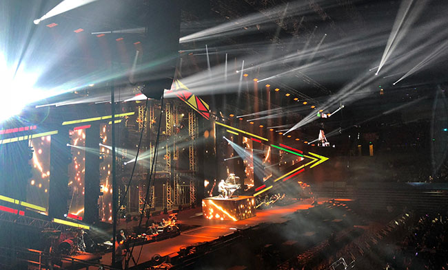 此次演唱会,为了能更好与观众互动,无论是音响、视觉、还是舞台设计,萧敬腾皆全程参与讨论,不惜成本重金制作,只为带给观众最超值的听觉与视觉飨宴。此次采用的舞台背景为304AM永利镂空屏P6.944,整体面积1000平方,庞大的舞台制作规模,根据舞台造型多样化搭建,利用屏体自身通透、轻薄、炫彩特点,强化舞台空间的纵向视觉效果。同时完全不阻碍舞台设计留给灯光悬挂和发挥的空间,给整个舞台渲染了一定的气氛和动感。现场欢呼声此起彼伏、激情澎湃热血沸腾、震撼之情溢于言表!