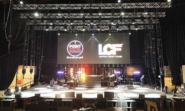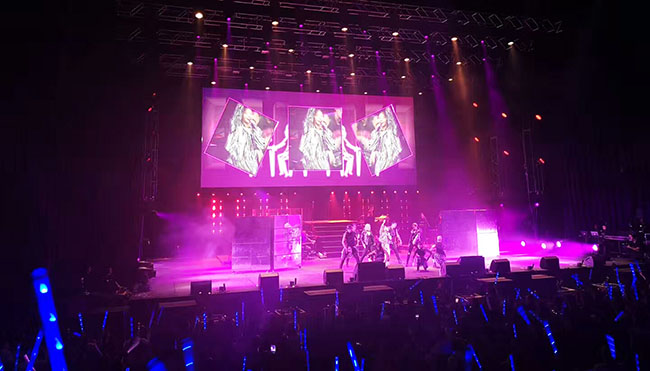 LED大屏幕,侧方以两个LED小屏为辅助。这三块显示屏均采用304AM永利自主研发的租赁屏P4.81,500X500mm的箱体尺寸,轻松实现拼接要求,模组前后维护,智能显示模块,产品使用稳定,通过利用现代声光电的渲染,在产生强烈的舞台艺术效果的同时也不喧宾夺主。